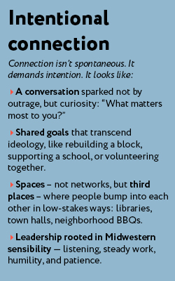 Connectedness often shows up in the everyday places where ideology isn’t front and center: a neighborhood cleanup, a school fundraiser, a volunteer shift, a storm that knocks out the power and sends neighbors to check on one another. These ordinary interactions don’t erase profound differences, but they’re examples of how our shared lives are bigger than partisan labels.