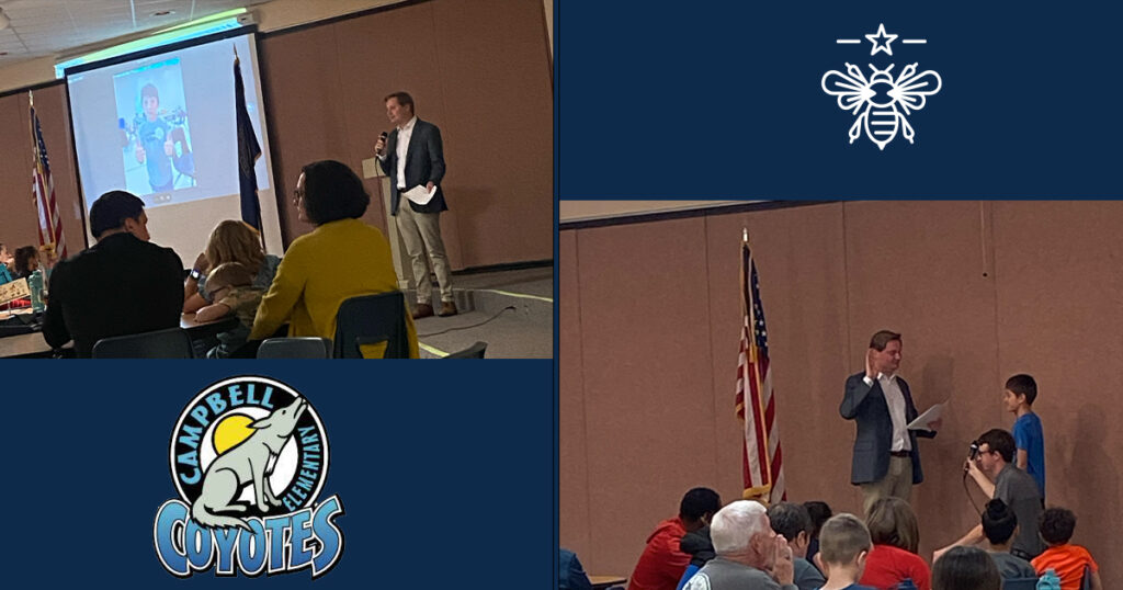 Lincoln Councilmember Brodey Weber, who represents north-central Lincoln, administered the oaths of office at a special ceremony inaugurating student leaders at Civic Nebraska’s Campbell Elementary CLC.