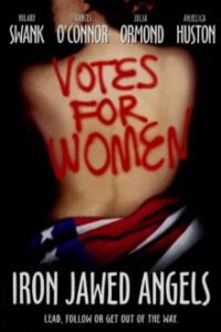 Our pick: Iron-Jawed Angels (2004). Originally broadcast on HBO, Iron-Jawed Angels is a frenetically shot, aggressively edited, in-your-face telling of the final fight for women’s suffrage. Hilary Swank plays Alice Paul, founder of the National Woman’s Party, who together with Lucy Burns (Frances O’Connor), struggles against conservative forces to pass the 19th amendment.
