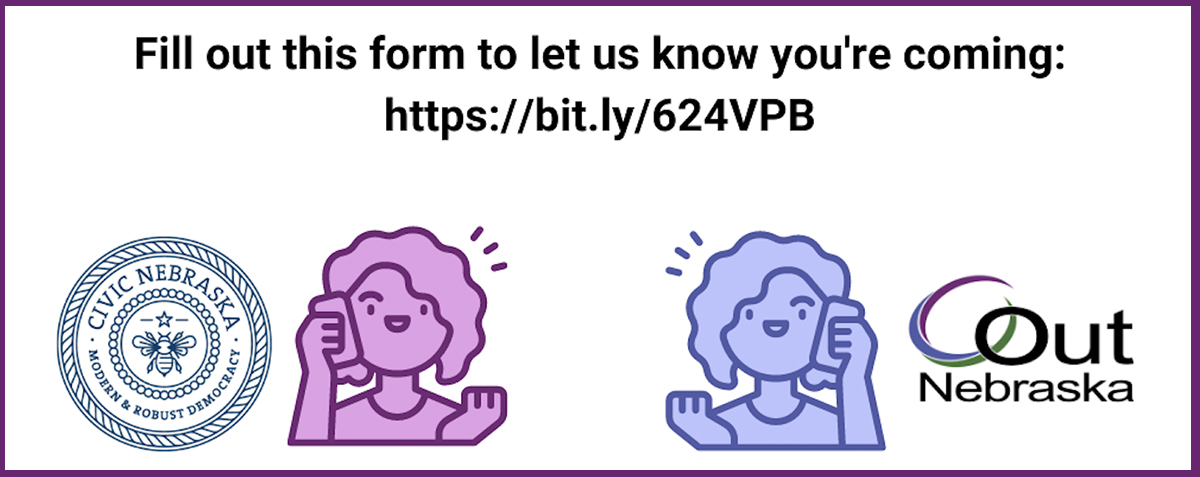 OutNebraska and Civic Nebraska are hosting a volunteer phone bank to get out the vote for the June 28 CD-1 special election. Join virtually or in person at The Foundry in Lincoln for a fun Friday evening of volunteering. Through this effort, you will be encouraging voters to make it to the ballot box and building awareness of OutNebraska’s advocacy with the LGBT+ community.
